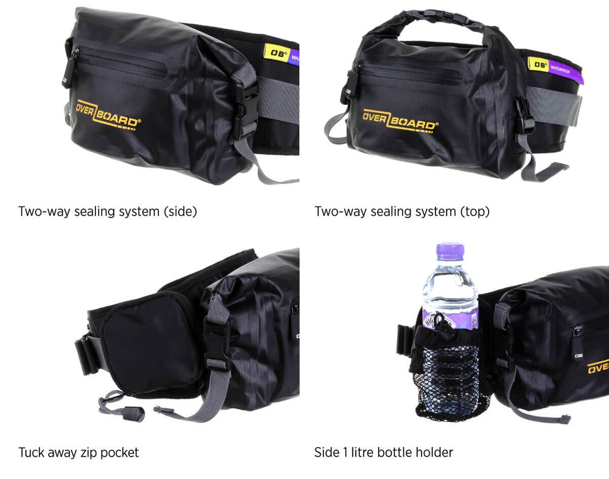 The OverBoard 4 Litre Pro-Light Waterproof Waist Pack is made from feather-light, eco-friendly TPU fabrics. It seals tight with our Fold Seal System™, making it perfect for quick submersion, and it floats if dropped in water, keeping your gear safe.