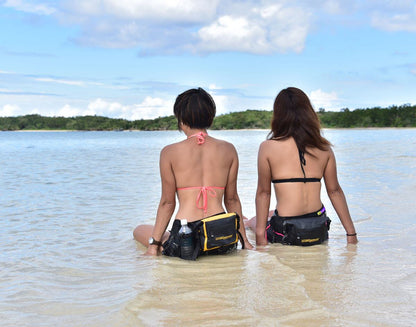 With a weatherproof front zip pocket and a side bottle holder, this waist pack is ideal for all watersports, boating, kayaking, cycling, or walking.